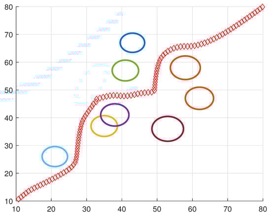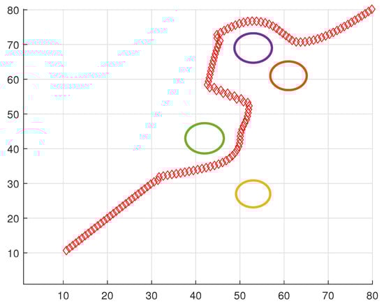 In general aquatic environments, excluding the topography, most obstacles in a floating state are often singular. Therefore, the initial focus is on the methodology for generating obstacle avoidance paths in the presence of a single floating obstacle. Assume that there are n waypoints generated by the global path technique. If the kth waypoint is denoted as , then the obstacle avoidance path generated when moving to the next waypoint (k + 1)th can be formed using the stream function such as defined: