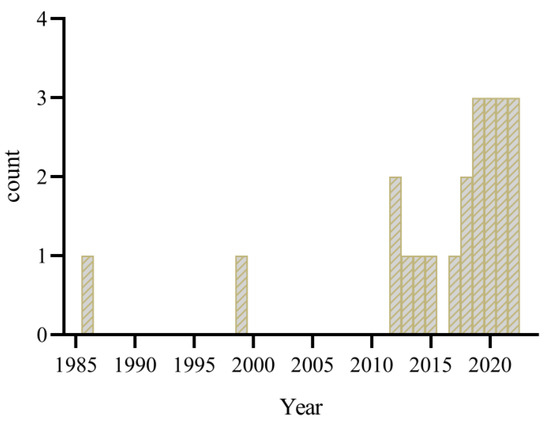Different minerals’ suitability and effects on gilthead seabream have been investigated in a few papers published in recent decades (Figure 2), though the mineral requirements of gilthead seabream are not yet fully understood. The publication trends for the query of gilthead seabream mineral requirements over time show an increased special interest during the past years. This particular interest increased after the challenges faced by aquaculture production, succeeding fish meal and oil substitution with plant meals and oil adoption. Indeed, the use of sustainable vegan ingredients, even if formulated to fulfill the protein and lipid requirements, affects the mineral composition of feeds, creating the need for additional mineral supplementation [61,62].