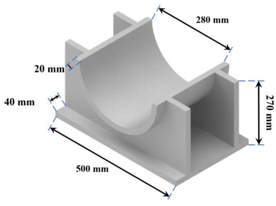 The supporting loading block consisted of an arc-shaped steel plate, two rib plates, and a bottom plate. All these components were of Q235B steel of 20 mm thickness.
