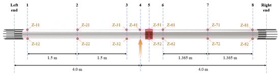 The meaning of each measuring point is as follows: “Z” indicates that the detecting direction of the measuring point is parallel to the bracing axis; the first number represents the section number; when the second number is “1”, it indicates that the measuring point is located on the upper side of the bracing; when the second number is “2”, it indicates that the measuring point is located on the lower side.