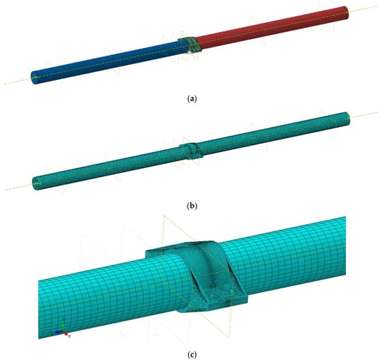 Finite element model and mesh generated for the bracing: (a) Finite element model, (b) Overall mesh, (c) Local mesh.