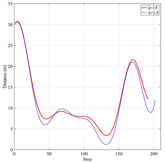 , which represent the tangential reaction coefficient and repulsion coefficient, respectively, the larger their values, the earlier the planned path avoids obstacles, and the AUV stays farther away from obstacles, making the planned path safer, as in