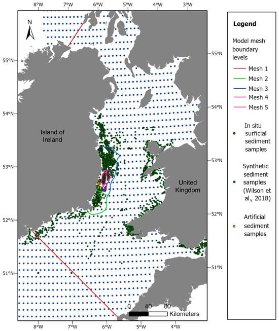 - Wilson, R.J.; Speirs, D.C.; Sabatino, A.; Heath, M.R. A Synthetic Map of the North-West European Shelf Sedimentary Environment for Applications in Marine Science. Earth Syst. Sci. Data 2018, 10, 109–130. [Google Scholar] [CrossRef]