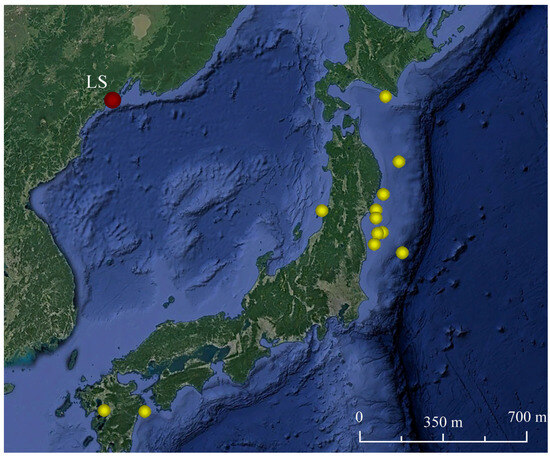 A tsunami is one of the most dangerous catastrophic phenomena on Earth. One of the regions of the planet affected by tsunamis the most is Japan. To detect and prevent this catastrophic phenomenon, a network of GPS receivers, seismic stations of ground and bottom types, and high-precision sea level meters has been developed on the islands and in the waters of Japan. In recent years, tsunami early warning systems have been widely introduced [1,2]. The development of remote satellite sensing of the water surface of tsunamis in tsunami-hazardous regions has led to the creation of the coastal Global Navigation Satellite System (GNSS), which applies an innovative method of reflecting signals that measure the height of the sea surface with high accuracy [3,4].