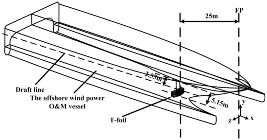 According to the results of the above optimization analysis, the suitable T-foil model for this O&M vessel is shown in Figure 16 and the parameter details are listed in Table 2 [30].