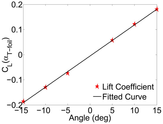 Figure 17 shows the optimal lift coefficient of the suitable T-foil for the ship. The fitting equation is described as follows: