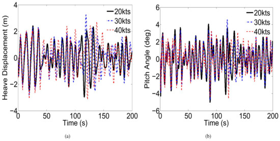 The O&M vessel motion at different speeds. (a) 20 kts. (b) 30 kts. (c) 40 kts.