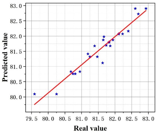 In the variance analysis of the response surface regression model, the p value can be used to judge whether each item has a significant impact on the response variable y. Considering the accuracy and reliability of the response surface regression model variance analysis, a confidence level of 95% was selected to determine the relationship between the design variables and the response variable y. If p > 0.05, it means the impact of this item on y is not significant, and this item should be deleted and recalculated. If p ≤ 0.05, it signifies that the item holds a significant influence on variable y. However, if p ≤ 0.01, it indicates a notably pronounced impact of this item on variable y, underscoring its heightened importance in influencing y.