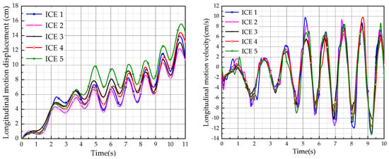 | Wavelength (m) | Ice Number | Amplitude of Surge Speed (cm/s) | Mean Value of Longitudinal Drift Motion Velocity (cm/s) | Mean Value of Amplitude of Surge Velocity (cm/s) | Mean Value of Surge Period (s) |