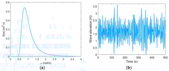 Wave simulation: (a) power spectral density of the wave and (b) height of the wave.