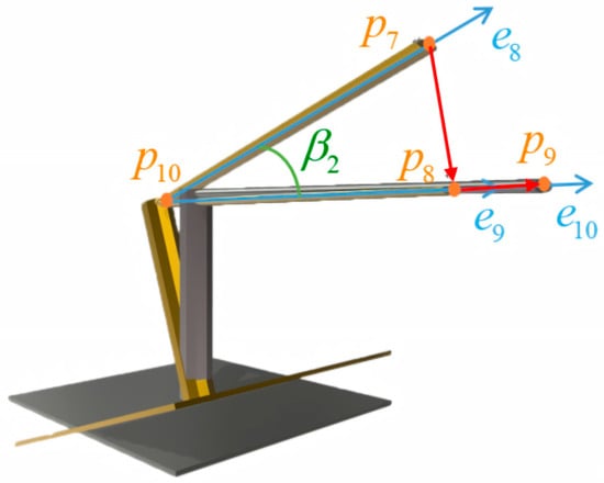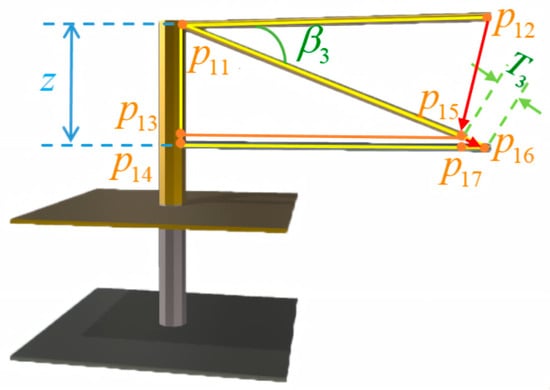 In order to achieve complete compensation, it is necessary to point the TAS end that has undergone rotation joint compensation and pitch joint compensation towards the target point p, where points , , and are in a straight line. The vector pointing from point to and the vector pointing from point to are in the same direction; then, vector is:
