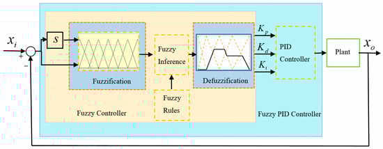 Moreover, it is obvious that the position error was greatly reduced whether using PID or fuzzy PID control. For the former, the maximum error of displacement in the X direction was reduced to 0.0548 m, that in the Y direction was reduced to 0.1629 m, and that in the Z direction was reduced to 0.5596 m. For the latter, the maximum error of displacement in the X direction was reduced to 0.0447 m, that in the Y direction was reduced to 0.1183 m, and that in the Z direction was reduced to 0.4468 m. The changes in these data are also consistent with the above discussion.
