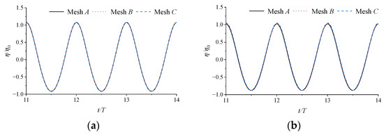The wave parameters used in this section are shown in Table 2, which are consistent with Zhang et al.’s experiment [20]. In Table 1, S = η0/L is wave steepness, η0 is wave elevation, L is wave length, T is wave period.