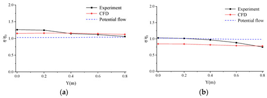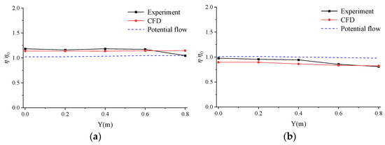 The numerical wave elevation at k0c = 0.8 m−1: (a) Weather side; (b) Lee side.