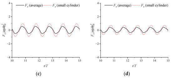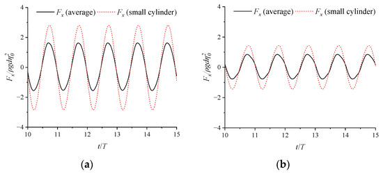 With the comparison of the wave force on the SPEC and the small single-cylinder (rs = 0.125 m), the protection problem is further studied. It can be observed from Figure 20 that the average wave forces on the SPEC are smaller than the values of a single small-cylinder under different wave steepness conditions, which implies that the concentrator has a good overall protection.