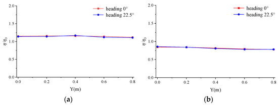 The numerical wave elevation at k0c = 0.6 m−1: (a) Weather side; (b) Lee side.