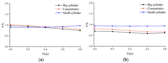 Figure 18 compares the dimensionless wave elevation (η/η0) of the center of the concentrator and gives partial experimental data. It can be seen that η/η0 decreases gradually with the increase in wave steepness, indicating that nonlinear wave causes a negative impact on the concentration effects. However, it is noted that as the wave steepness reaches the maximum value S = 0.08, the η/η0 is still greater than 1, indicating that the SPEC is still having effective performance of wave energy concentration under nonlinear waves.