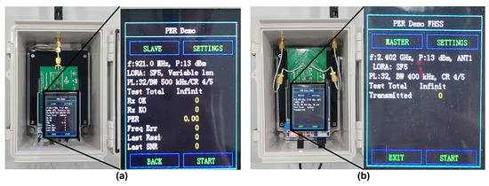 Measurement devices for (a) sub-1 GHz and (b) 2.4 GHz. The RSSI measurements were performed using two transmitter-receiver pairs for each of the sub-1 GHz and 2.4 GHz bands.
