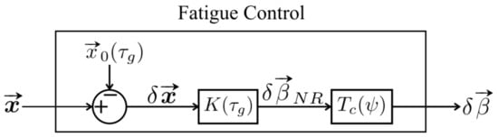 Our proposed controller, to be embedded into ‘Fatigue Control’ block in Figure 2, is depicted in the block diagram in Figure 4. Signals and blocks in the block diagram will be explained below. The controller design procedure consists of the following steps.
