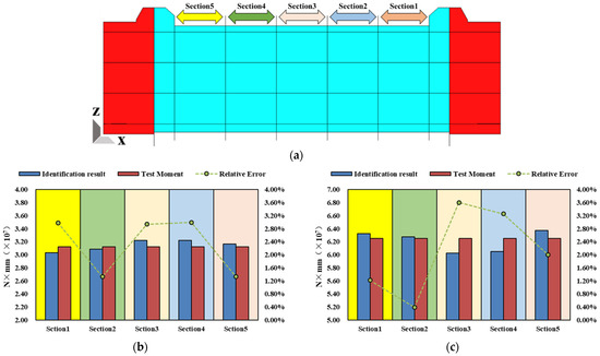 where is the load to be identified; and are the intermediate variables. The relative error of bending moment identification of each section is as follows: