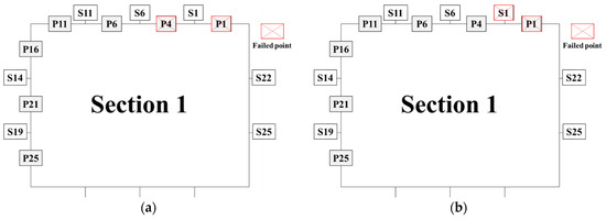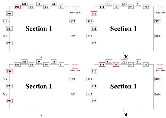 In order to investigate the underlying correlations, section 1 was regarded as the failure section due to its arrangement of a relatively higher number of measuring points compared to other sections. Seven failed conditions are designed, as shown in Figure 8.