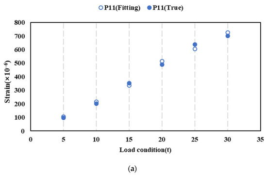 where is the elastic modulus; σ is the longitudinal strain of a measuring point on the section; is the section moment of inertia; and is the vertical distance between the measuring point and the neutral axis. Therefore, the load–strain transfer matrix can be estimated as follows [14,15]: