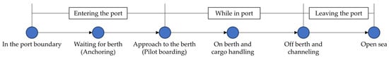 The categorization of vessel navigational statuses was based on data from the AIS and the Port-MIS. This classification is crucial because vessels consume bunker oil differently depending on their navigational status. Figure 5 provides a simplified illustration of the vessel’s journey, starting with its arrival and ending with its departure from the port.