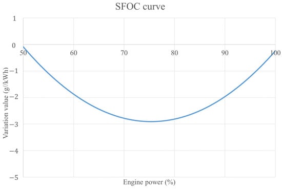 Here, i represents vessel identification, t refers to the time when the speed and the location are recorded in the AIS data during the voyage. The emission factor refers to the emission content in the fuel, and fuel consumption signifies the total usage at a specific time (t). Specific fuel oil consumption represents the amount of fuel (usually in grams or kilograms) consumed by a ship’s engine to produce one unit of power over a certain period, typically expressed in grams or kilograms per kilowatt-hour (g/kWh or kg/kWh).