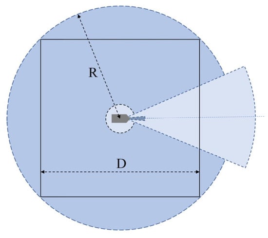 Based on the parallel line scanning search, the global path should make the search direction of USV consistent or opposite to the direction of search area width, which can complete area coverage with the least number of turns. We set the spacing width between the two parallel lines to be the width of the inner square of the detection range, called D, which is also the scanning width of the USV along the parallel line, as shown in Figure 6.