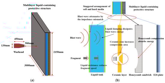 - Kong, X.; Wu, W.; Li, J.; Chen, P.; Liu, F. Experimental and Numerical Investigation on a Multi-Layer Protective Structure under the Synergistic Effect of Blast and Fragment Loadings. Int. J. Impact Eng. 2014, 65, 146–162. [Google Scholar] [CrossRef]
