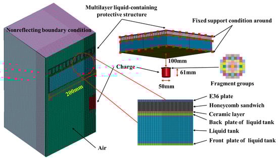 - Li, J.; Huang, C.; Ma, T.; Huang, X.; Li, W.; Liu, M. Numerical Investigation of Composite Laminate Subjected to Combined Loadings with Blast and Fragments. Compos. Struct. 2019, 214, 335–347. [Google Scholar] [CrossRef]