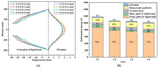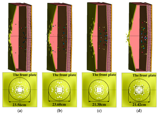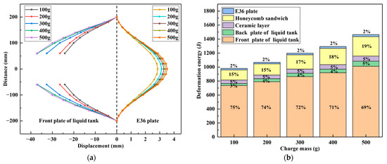 - When the charge mass remains constant, the degree of damage to the protective structure is minimally impacted by the fragment weight. The damage can be substantially reduced by decreasing the number of fragments. The overall plastic energy absorption and damage to the multilayer liquid-containing protective structure decrease as the fragment mass increases. However, the central region of the front plate sustains more severe damage. As the number of fragments increases, the absorption of plastic energy by the structure and the breakage of the front plate of the liquid tank increase significantly.