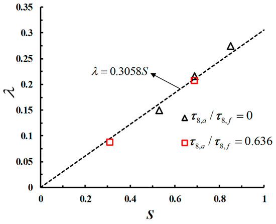 The evolution rule between the cyclic degradation parameter and the cyclic stress level parameter S under different stress levels is summarized, and the coefficient recommended by Cheng et al. [14] is modified. As shown in Figure 3, increases linearly with S under different octahedral static shear stress ratios, which can be fitted by the following formula: