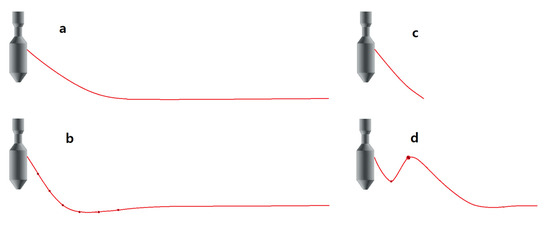 The mooring shown in Figure 2d is lazy-S mooring with a line float and weight. The trawl float supports most of the weight of the mooring so that the resting force the mooring imparts on the WEC is smaller than the other mooring configurations. A WEC with a similar mooring was studied by Yang et al. [28].