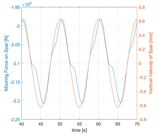 Simulation mooring force due to forced sinusoidal motion of the spar.