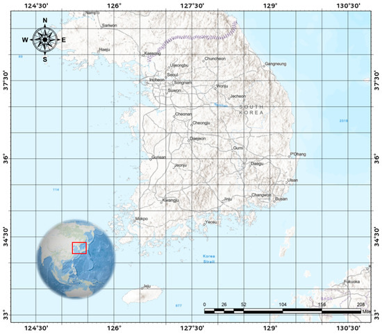 The entire Korean coastal area was selected to construct the maritime traffic network dataset, as shown in Figure 1. Previous research has focused on relatively small areas near ports or shallow waters for shortest path analysis. In contrast, this study aims to construct a national-scale maritime traffic network for ships to connect ports. Korea is located in Northeast Asia, and its geography depends strongly on the maritime industry, with 99.7% of its water volume used for shipping [28]. Therefore, the construction of a maritime traffic network is urgently required to handle the smooth flow of maritime traffic, and the importance of safe and efficient shortest path planning is increasing. This study emphasizes the need to construct a comprehensive maritime traffic network that covers all areas.