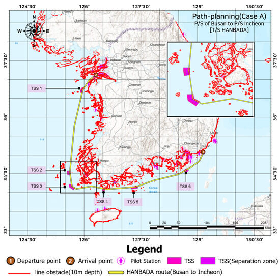 Path planning of the network dataset (Case A) from Busan to Incheon.