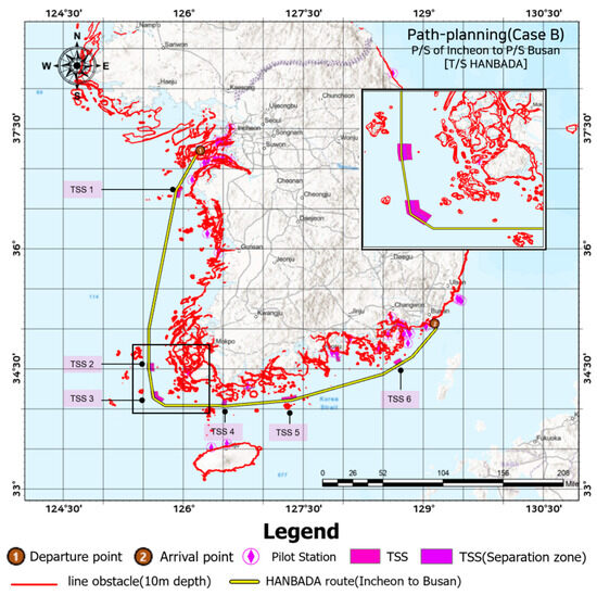 Path planning of the training ship (Case B) from Incheon to Busan.
