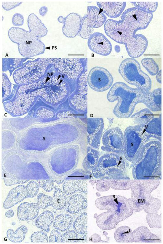 - Walker, C.W.; Harrington, L.M.; Lesser, M.P.; Fagerberg, W.R. Nutritive phagocyte incubation chambers provide a structural and nutritive microenvironment for germ cells of Strongylocentrotus droebachiensis, the green sea urchin. Biol. Bull. 2005, 209, 31–48. [Google Scholar] [CrossRef]