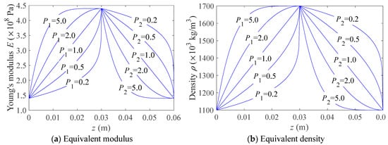 where P is the gradient index and h is the thickness of FGMs. The spatial distribution of component materials is jointly determined by the distribution parameters a, b, and c.