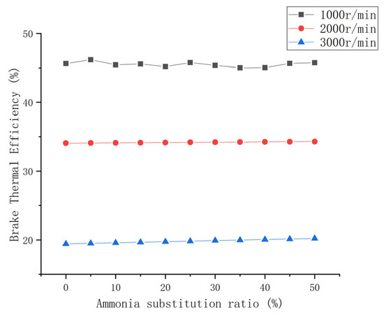 Brake thermal efficiency with ammonia blend ratio.