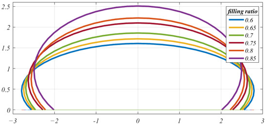 Based on this method, we programmed a pre-processor, which generates the nodes and elements of a specified Geotube, for the BELWF. Figure 1 presents the shapes of partially filled Geotube, in all the practical range of filling: 0.60, 0.65, 0.70, 0.75, 0.80, and 0.85.