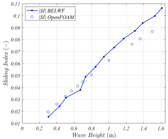 A comparison of the SI, versus wave height; between BELWF and OpenFOAM.