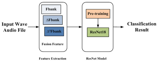 In VFR, we use FBank, delta FBank and delta-delta FBank to construct a fusion feature; taking the feature as input, we classify and recognize the target based on the model constructed by a residual network ResNet18. The architecture of VFR is shown in Figure 1.