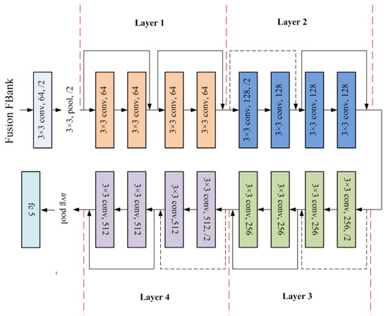 The ResNet18 network structure we use is shown in Figure 4 with the input changed to 1 or 3 according to the number of channels of the input spectrum, the other structures remain unchanged.