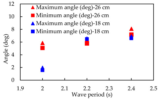 Angle response under different wave periods with wave heights of 18 cm and 26 cm.