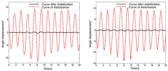 As can be seen from Figure 23, under the conditions of ±10 ° and 0.5 Hz of simulated sea wave disturbance, the platform can stabilize itself within the range of ±0.36 °. The result shows that the attitude stabilization system can achieve the dynamic stability of the water surface of the load system and meet the design requirements.