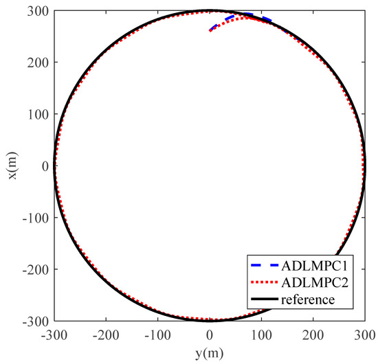 trajectories controlled by the ADLMPC controller and comparative virtual