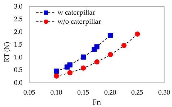 | Total Resistance (N)—w/ Caterpillars | Total Resistance (N)—w/o Caterpillars | ||||||