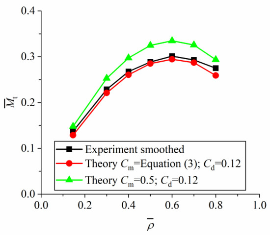 According to the experiment curves (1) and (2), the sphere with zero initial velocity accelerated under the effect of net buoyant force after being released, but the acceleration amplitude gradually decreased. When the displacement of the sphere was about 0.16 m ( = 1.42) (that is, the distance from the center of the sphere to the ice plate was about 0.1 m ( = 0.89)), the velocity of the sphere was almost uniform, which indicated that the forces on the sphere were almost balanced. On the one hand, the viscous resistance increased with the velocity of the sphere. On the other hand, the additional mass force increased with the decrease of the spacing according to Equation (3). Both contributed to the balance of the net buoyant force. Therefore, in a theoretical prediction, the selections of drag and added mass coefficients and need to be discussed.